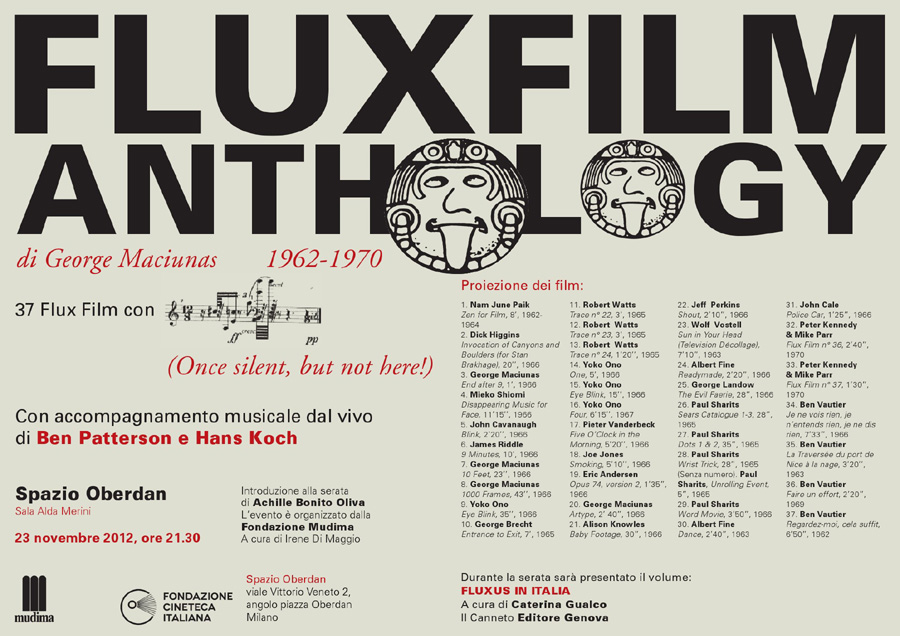Un appuntamento da non perdere, realizzato dalla Fondazione Mudima in collaborazione con la Fondazione Cineteca Italiana, a cura di Irene Di Maggio e dedicato a una delle più importanti neoavanguardie degli anni Sessanta, Fluxus.