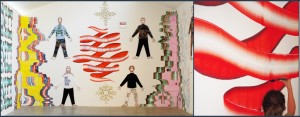 Si tratta di un originalissimo combine-painting in cui al murales si uniscono, fondendosi con la pittura, le creazioni dello stilista belga della collezione autunno-inverno 2012/13, frutto dell’intensa collaborazione con i due artisti.