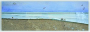Come scrive la curatrice, «La parte inferiore dell’opera è caratterizzata da sabbie e detriti, che sembrano invocare un’esperienza tattile della materia, probabile innesco di una proustiana rêverie. Alla tela dipinta, che occupa la fascia centrale, si sovrappone una teca trasparente riempita con acqua di mare, foriera di pensieri, cullati dalle onde come messaggi in una bottiglia. Il cielo, per finire, è realizzato con colori ad acqua, secondo campiture non uniformi che evocano un’idea di movimento, accentuata dalla presenza di piume bianche, simbolo di leggerezza e spiritualità».