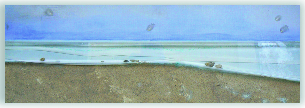 A completare il progetto espositivo, quattro figure angeliche, realizzate con legni, pietre e ferri rilasciati dal mare d’inverno, ed alcuni interventi a carattere performativo, che proiettano il visitatore sulla riva di un mare lontano, dove lo sguardo si perde e la mente inizia il suo viaggio.