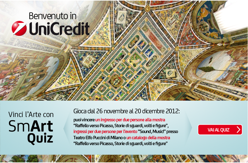 Continua l’impegno di UniCredit al fianco delle Arti con il concorso SmArt Quiz che si svolgerà sulla pagina Facebook UniCredit Italia dal 26 novembre al 20 dicembre 2012.