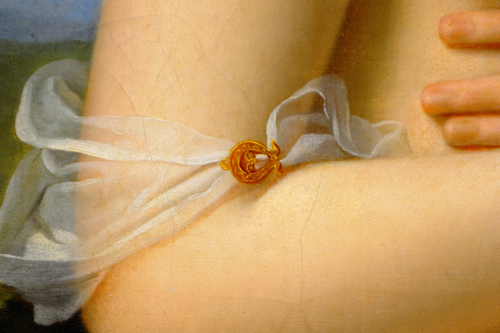 – Il velo che le copre il pube è simbolo di verginità, rappresenterebbe l’imene integro.