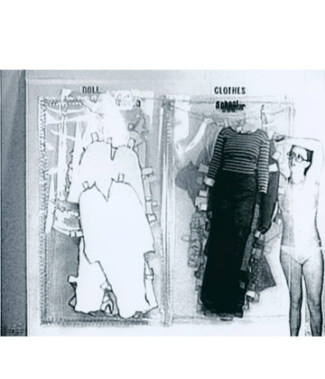 La pellicola animata Doll Clothes, del 1975 (realizzata quando l’artista frequentava ancora il college) è incentrata sulla Sherman che interpreta una figura vestita solo con la propria biancheria intima, intenta a provare vari abiti. Una mano gigante appare nel fotogramma, afferra la silhouette, la sposta e la colloca nella custodia di plastica del libro. Questa mano fuori scala rappresenta la società e il confronto della donna con la sua conformità, struttura e identità.