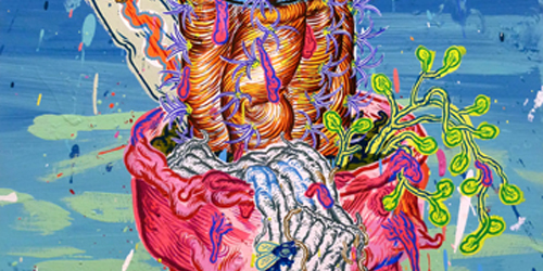 Lo Studio d’Arte Raffaelli di Trento giovedì 17 gennaio 2013 inaugura la mostra personale dell’artista americano Taylor McKimens a cura di Marco Tomasini. L’esposizione dà il via alla rassegna “Giovane pittura contemporanea” che a cadenza periodica presenterà soluzioni giovani e frizzanti prese dal vasto e intricato panorama pittorico contemporaneo. In mostra McKimens porta un po’ della sua America, o meglio i tratti di essa che ce la rendono subito riconoscibile. Il caldo torrido del deserto, le strisce di asfalto che come serpenti si snodano nel paesaggio disabitato, le piccole comunità rurali, abitate da personaggi quasi alieni. Il sole cuocente che ha accompagnato la sua infanzia nella cittadina californiana di Winterhaven, sembra sempre illuminare le sue composizioni. Una luce incidente che esagera i colori tramutando piante e uomini in esseri dai colori alterati, fluorescenti. In uno stile fumettistico, i contorni delimitano una realtà quotidiana, semplice e banale, ma resa speciale da una malinconia di fondo che spesso e volentieri si tramuta in pungente ironia. È questo lo spirito americano del “non prendersi mai troppo sul serio” del “take it easy” e che fa da leitmotiv a tutti i suoi lavori. Cè tanta pop art in McKimens, quellelevare loggetto quotidiano allo strato alto della cultura, tramutandolo in oggetto darte, ma con laggiunta di un qualcosa in più, sicuramente scomodo e inquietante. Quindi il disgusto, il raccapriccio, la sensazione di ripugnanza fanno parte del gioco e dellambito del possibile in senso fantasioso. Con McKimens linaspettato può quindi accadere, pronto a stupirci dietro la porta. I suoi cactus non sono più silenziosi e immobili, ma paiono prendere vita, così come la solitudine del camionista in un “diner” viene vivacizzata da esplosioni di colore da effetto bomba atomica. Le deformazioni possono comparire qua e là, sia sulle piante che sugli esseri umani. I suoi personaggi sono stucchevoli come i cactus, alterati geneticamente perché contaminati da un ambiente ormai troppo saturo di quell’“american dream” dove tutto è possibile e che li ha trasformati in automi, dai volti inespressivi, intenti a fare sempre la stessa azione. A tal punto che sono quasi “gli oggetti”, simbolo del consumo più sfrenato a impadronirsi dei loro padroni, in una fusione inquietante e grottesca, ma sempre con una giusta dose di ironia. Per la mostra sarà pubblicato un catalogo con testo critico di Marco Tomasini.