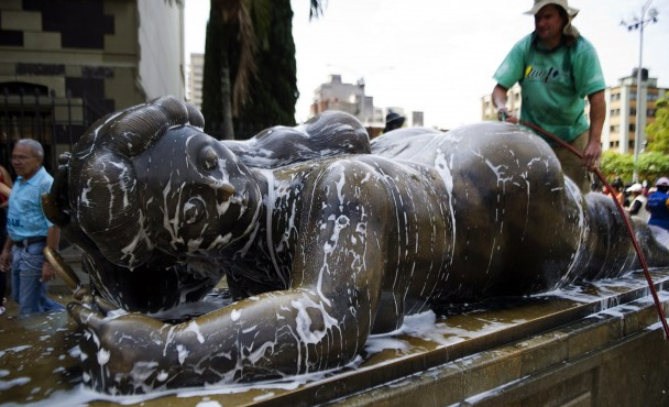A Medellin, patria del grande artista Fernando Botero -oggi 81enne- si è tenuto l’annuale lavaggio delle opere dello scultore e pittore. 23 statue di bronzo di donne formose donate nel 2002 da Botero installate in una grande piazza che ha preso il nome dell’artista.