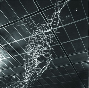 Gli elementi semplici e leggeri, di Leonardo Mosso, talvolta collegati tra loro da nodi flessibili, capaci di generare forme asimmetriche, raggiungono un equilibrio naturale nelle strutture, attraversate dall’energia in caduta dall’alto al basso. La disposizione dei pezzi, traccia i movimenti dinamici delle superfici e crea elementi che si rivelano ideali per le coperture architettoniche e per la progettazione di attrezzature luminose di dimensione urbana. Tra le opere esposte emergono la struttura/scultura luminosa Mosstrut Valle dei Salici 2002-2004 e l’aerea Struttura logaritmica.