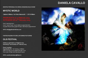 Mostra personale dal titolo “Mystic World” alla Galleria il Milione in Via Pietro Maroncelli 7 dell’artista Daniela Cavallo. Grande successo per l’evento, tanto da essere prorogata fino al 20 Febbraio 2013.