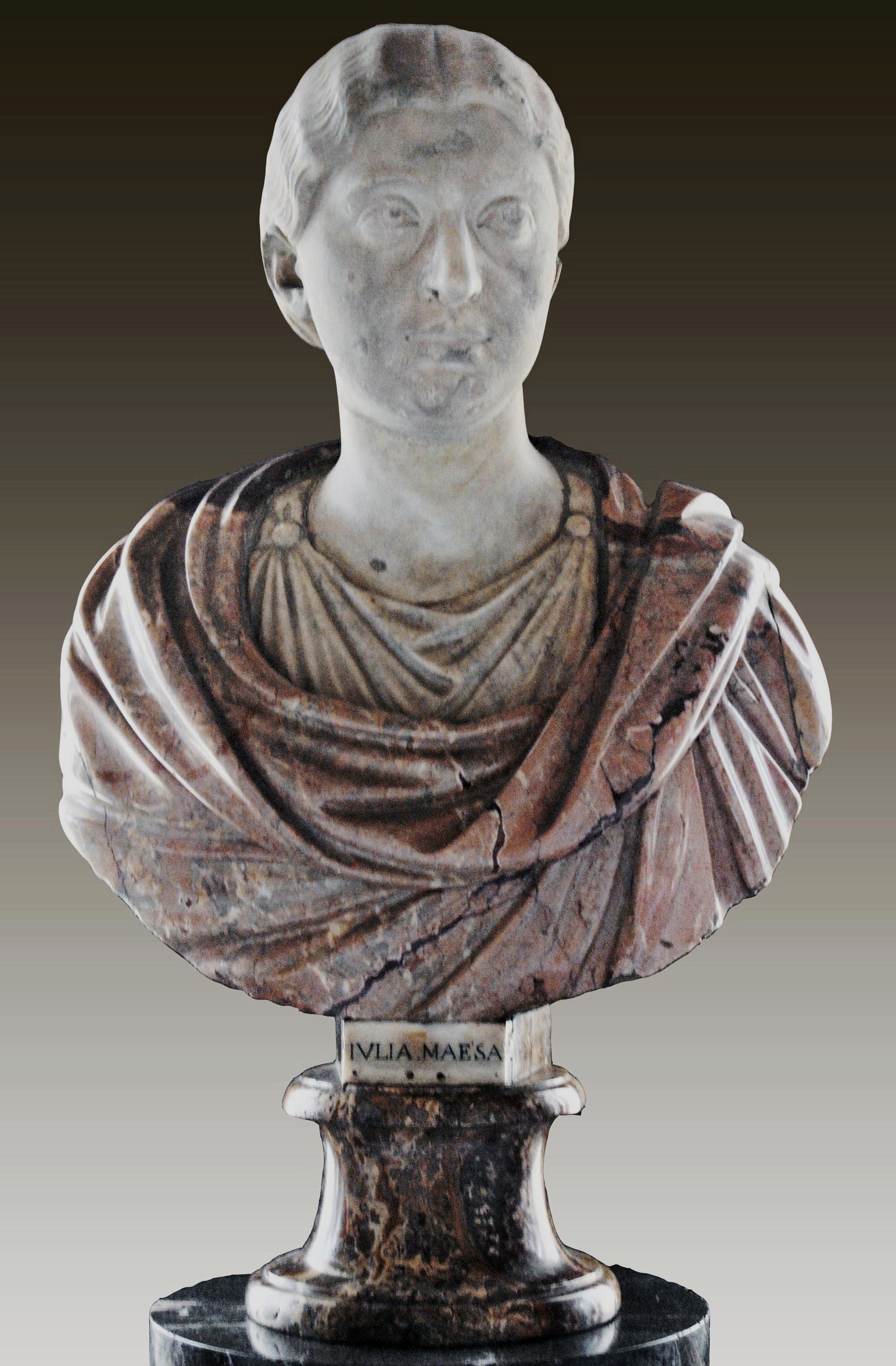 Presentato lunedì 4 febbraio alle 11, nella sala “Uscita Buontalenti” degli Uffizi a Firenze, il restauro del busto lapideo di ‘Giulia Maesa’ esposta nel primo Corridoio della Galleria. L’intervento è stato pesentato da Cristina Acidini Soprintendente del Polo Museale fiorentino, Antonio Natali, Direttore della Galleria, da Fabrizio Paolucci, Direttore dipartimento di antichità classiche e da Mariarita Signorini responsabile restauri e membro del Consiglio nazionale di Italia Nostra, L’opera che è composta dalla testa antica in marmo bianco, inserita nel busto cinquecentesco in marmo Portasanta, che poggia su una base in onice, è stata riportata a piena leggibilità grazie al restauro condotto da Paola Rosa. L’antico marmo, databile tra il II-III sec d.C., è stato oggetto di pulitura delle superfici, sono state rifatte le vecchie stuccature ormai alterate e decoese ed è stato integrato nelle parti mancanti di entrambe le orecchie, nell’occhio sinistro e nel labbro inferiore, come pure del basamento in onice. Il ritratto raffigura una privata di età matura, i cui segni dell’età sono visibili nella pelle cadente delle guance, nelle occhiaie e nelle rughe ai lati della bocca, gli occhi sono grandi, con palpebre spesse, iridi e pupille incise. Lo sguardo volto a sinistra, la bocca chiusa dalle grandi labbra carnose ben modellate, il mento largo e leggermente schiacciato, conferiscono all’insieme una notevole forza espressiva, valorizzata ora dal bel restauro. La capigliatura bipartita, scende con piccole ondulazioni, che si raccolgono in due trecce alla base della nuca. Dai segni sul collo non è da escludere la presenza di ulteriori parti accessorie che arricchivano l’acconciatura ai lati incorniciando il volto.