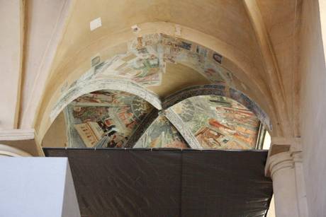 Dopo il ciclo della Vergine e l’albero di Jesse, i restauratori della scuola di Venaria restituiscono un nuovo ciclo di affreschi nella ex chiesa di San Marco, che da sei anni ospita lo spazio espositivo Arca. Si tratta di un ciclo pittorico, nella terza cappella della navata di destra, che risale alla fine del Quattrocento e racconta la storia di Sant’Agostino, dalla nascita fino al battesimo per mano di Sant’Ambrogio.