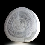 in gesso alabastrino. Il loro essere collocati senza ordine sul pavimento suggerisce disgregazione, frammentazione. C’è come un disordine al cuore del reale che chiede tuttavia di trovare un’armonia, una logica, un senso. E infatti i solidi sembrano dirigersi verso un punto determinato che crea un polo di tensione, grazie al quale tutti gli elementi trovano il senso del loro percorso. L’opera di Giorgio Tentolini, vincitore del Premio Rigamonti, consiste invece in due rotoli, uno di carta ancora sigillato, l’altro in rete bianca parzialmente