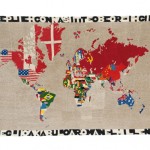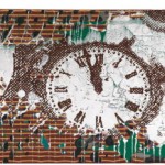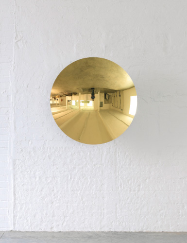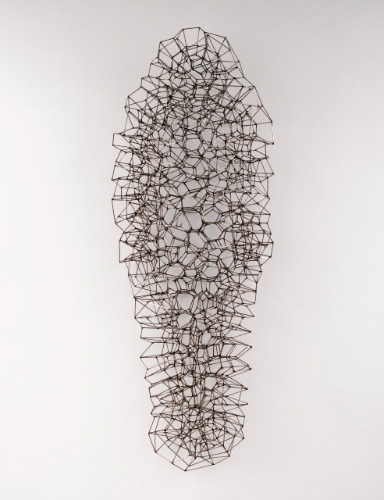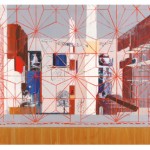 tape, staples, screws, fittings, glass, latex paint, UV-protective lacquer in artist’s frame