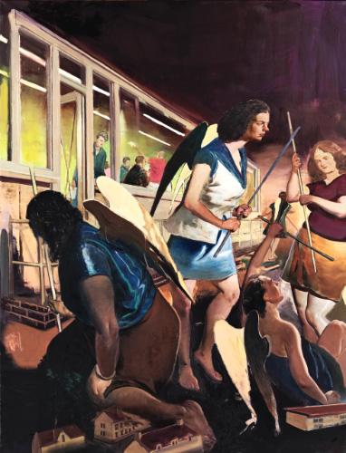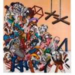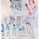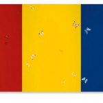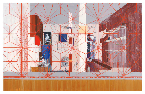wood, plywood, glue, acrylic paint, polyester film, paint marker,