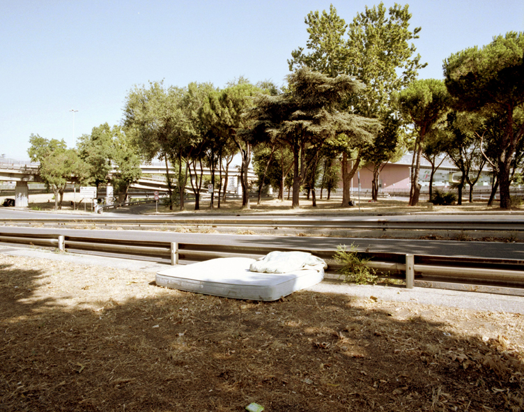 Entrambi i lavori sono il risultato della complessa attività di ricerca che Gianfranco Gallucci conduce dal 2010, che lo ha portato a scandagliare la realtà di Roma, dei suoi luoghi, fino nel profondo della loro natura. Il primo – cronologicamente – dei due progetti è ROMApolaroids (2011-2012): nato quasi per caso, come atto di pura registrazione degli stimoli offerti dalla città; è stato reso possibile grazie all’uso di un’applicazione che trasforma l’iPhone in una ‘Polaroid digitale’, mantenendo però inalterate tutte le caratteristiche tecniche del modello originale analogico, dall’esposizione alla natura unica e irriproducibile delle immagini scattate. Il risultato è un racconto frutto dell’istintività, che si è concretizzato nel tempo lungo di indagine in un insieme di scatti poeticamente coerente, indice di un profondo processo di metabolizzazione dell’essenza di Roma. L’altro, Sleeping by the roadside (2012), nasce da un’indagine sul Quartiere Nomentano; qui Gallucci si concentra sulla Circonvallazione intesa come zona di confine, non-luogo, dove trovano rifugio senzatetto e membri della comunità rom. Immagini pensate secondo un processo indiretto di registrazione della realtà, per cui sono le tracce di coloro che vivono ai margini della città e il loro profondo disagio a essere soggetto di ciascuna fotografia. Numerose le differenze che separano questo progetto dal precedente: la progettualità, lo studio e la lentezza, oltre che la tecnica, testimoniano quanto Gianfranco Gallucci affronti la fotografia con curiosità e passione, in una continua sperimentazione di mezzi e tematiche, sempre approfondite in modo sapiente. In RomaCONTRO si palesano dunque le contrapposizioni interne della città, in un confronto-scontro tra le infinite sfaccettature che compongono la sua identità, tramite una lettura che ne analizza gli strati e i diversi livelli che le appartengono: in un continuo richiamo all’esperienza personale sia di chi vive Roma di passaggio sia di chi la conosce da sempre e continua ad amarla nonostante i suoi innumerevoli difetti.” (Serena Silvestrini) Gianfranco Gallucci è nato a San Vito al Tagliamento (PN) nel 1981, vive e lavora a Roma. Nel 2008 si laurea in Architettura a Ferrara con una tesi sperimentale di ricerca sull’introduzione della fotografia urbana nell’analisi dei sistemi metropolitani. Si avvicina alla fotografia nel 2004 da autodidatta. Nel 2009 vince una borsa di studio europea e svolge un tirocinio di alcuni mesi a Parigi presso la Galerie VU’ dell’omonima agenzia. Dal 2010 lavora come fotografo documentarista, coinvolto in progetti a lungo termine sulle relazioni tra il paesaggio e i fenomeni sociali contenuti in esso. Ha collaborato con diverse riviste italiane e internazionali, ed esposto in importanti istituzioni italiane tra cui la Triennale di Milano. Dal 2011 è un fotografo accreditato dalle Nazioni Unite. Dal 2012 è rappresentato dalla Galleria Gallerati di Roma.