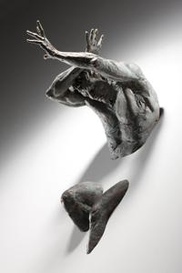 Una mostra che volta le spalle quella che ha aperto il 21 febbraio, fino al 15 marzo, alla Fondazione Mudima, la storica galleria d’arte milanese in via Tadino 26. Perché Matteo Pugliese, l’artista milanese classe 1969, è artefice di lavori che non solo, come capita di frequente nell’arte contemporanea, voltano le spalle alla comprensibilità immediata di un messaggio preciso (del resto “non mi intessa che la gente capisca quello che voglio dire. La mia arte è anzitutto un’esigenza per me”, dichiara). Il linguaggio di Pugliese stupisce perché, nonostante l’incomprensibilità, è coinvolgente (soprattutto per quanto riguarda le opere esposte al piano superiore della Galleria): l’artista infatti ricrea, con esattezza estrema, dei corpi, delle figure umane maschili che sembrano affiorare dai muri o sporgere dal pavimento, figure che non guardano quasi mai il visitatore, più spesso, anzi, sono voltate di spalle e sembrano affiorare dal pavimento o spingere per uscire dal muro. Soltanto dei gomiti, la schiena, o parti della gamba o la testa spuntano dal muro: ci si sente circondati da fantasmi, da presenze estranee. Una volontà dichiarata, quindi, quella di ignorare il prossimo, di voltargli le spalle, ma, allo stesso tempo, di avere bisogno di lui già solo per il fatto stesso di fare una mostra (l’arte è sempre e comunque una ricerca di dialogo da parte dell’artista). “Ha avuto una certa importanza, per me e la mia formazione, il fatto che quando avevo 8-9 anni la mia famiglia si è trasferita in Sardegna: un cambiamento totale, una vita completamente diversa”. Dopo una laurea in Lettere Moderne, a Milano nel 1995, Pugliese solo nel 2001 organizza e finanzia la sua prima mostra affittando uno spazio nel centro di Milano. D’allora espone in Italia e in tutt’Europa, e le sue opere sono parti di collezioni permanenti in gallerie italiane e estere (Roma, Hon Kong, Londra, Bruxelles e altre).