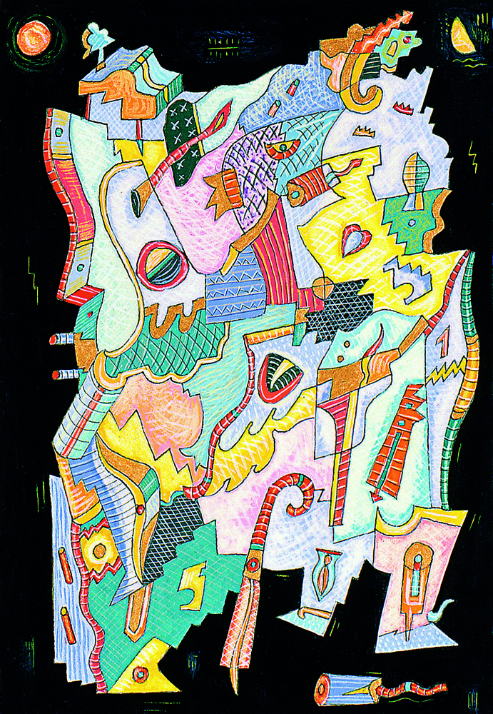 Pino Chimenti è reduce dalla partecipazione al Padiglione Italiano della Biennale di Venezia del 2011, segnalato al curatore Vittorio Sgarbi dal noto critico d’arte Gillo Dorfles, che, nel 1985, lo aveva già selezionato per apparire tra gli artisti scelti dalla critica nel prestigioso Catalogo dell’Arte Italiana edito da Mondadori. Dopo aver frequentato l’Accademia di Belle Arti di Urbino, sotto la guida del pittore Concetto Pozzati, Chimenti partecipa a numerose mostre personali e collettive in Italia e all’estero. A partire dalla seconda metà degli anni ’70, dopo un breve periodo di ricerca concettuale, la sua pittura acquista maggiore libertà compositiva, avvicinandosi alla personalissima figurazione astratto-fantastica che contraddistingue ancora oggi il suo lavoro, mai incline a seguire mode e correnti e caratterizzato da un’inconfondibile atmosfera fiabesca pervasa da una sottile ironia. «Ormai da diversi anni – ha scritto Dorfles dell’artista – prosegue nell’invenzione costante di piccoli miti personali, di strane leggende, nelle quali dei personaggi – tra il surreale e il ludico, tra il grottesco e l’affabile – si trastullano in mezzo a ghirlande di forme variopinte, di marezzature cromatiche, di sottili estroflessioni magnetiche, sempre sostenute da un minuzioso grafismo». Proprio quei miti personali e quei personaggi ludici e surreali sono i protagonisti della mostra del MACA, che li declina attraverso una collezione di circa 50 opere pittoriche, in cui il curatore Boris Brollo intravede un’affinità di spirito che lega l’artista calabrese a Picasso. «Non è una questione di forma o di segno, ma di concetto. Egli traduce l’opposizione di Picasso al regime franchista in una opposizione tout court – scrive Brollo –. Egli è un moderno maestro del racconto di questa terra calabra appartenuta a una grande storia e le cui radici trasudano ancora di questo passato glorioso. Pure qui egli sviluppa un senso del fantasticare che, benché affondi le radici nel passato, guarda al futuro. Futuro in cui il concetto dell’eterna lotta umana, oggi rimandata al virtuale, al computer e alle bombe intelligenti, segna un punto ancora umano alla lotta a corpo a corpo».