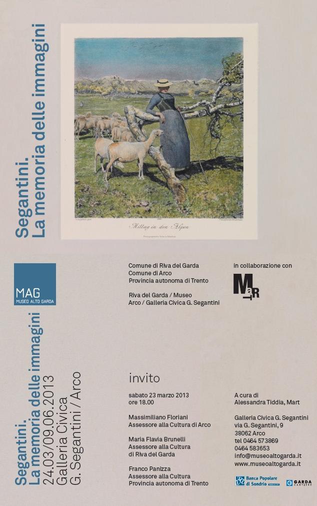Con la riapertura della Galleria Civica G. Segantini, spazio permanente dedicato al pittore arcense, verrà dato il via il 23 marzo alle 18 all’attività espositiva 2013 del Mag Museo Alto Garda, forte di una preziosa collaborazione instaurata con il Mart, Museo di arte moderna e contemporanea di Trento e Rovereto.
