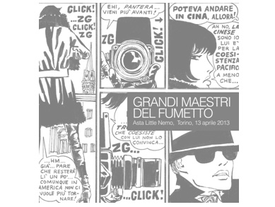 Venerdì 12 aprile 2013 la Casa d’Aste Little Nemo terrà, nella sede della Little Nemo Art Gallery Spazio Art&Co.mix di via Federico Ozanam 7 Torino dalle ore 17.30 alle 20, un’asta esclusiva dedicata alle tavole dei Grandi Maestri del Fumetto. Verranno esitati 500 lotti selezionati che ripercorrono la storia del fumetto attraverso le tavole originali.