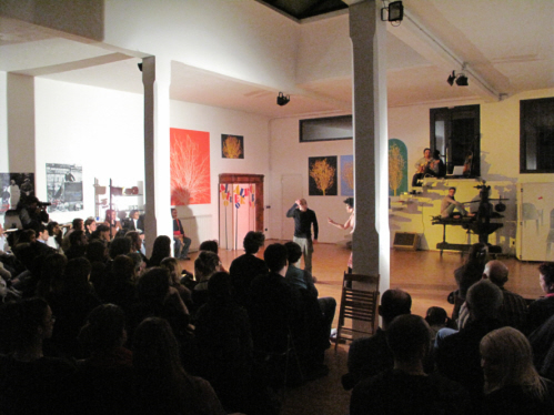 Abbiamo chiesto ad ogni compagnia/singolo artista di preparare 10 minuti ad hoc, appositamente per questa giornata e provocazione. Lo abbiamo fatto inviando loro una lettera “Crepino gli artisti” (in allegato). Una lettera scritta agli amici, colleghi, di getto, così, come modo di congelare il flusso di notizie dal settore teatro, cultura, arte. Divenuta anche un articolo del Magazine Milano Arte Expo MAE International Art Events, oggi è l’incipit della Giornata Mondiale del Teatro 2013 a Spazio Tadini.