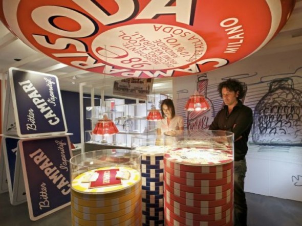 La Art Gallery racconta la storia del marchio, dagli esordi, quando nel 1860 lo sconosciuto liquorista Gaspare Campari sperimentò la formula dell’aperitivo, agli sviluppi odierni.
