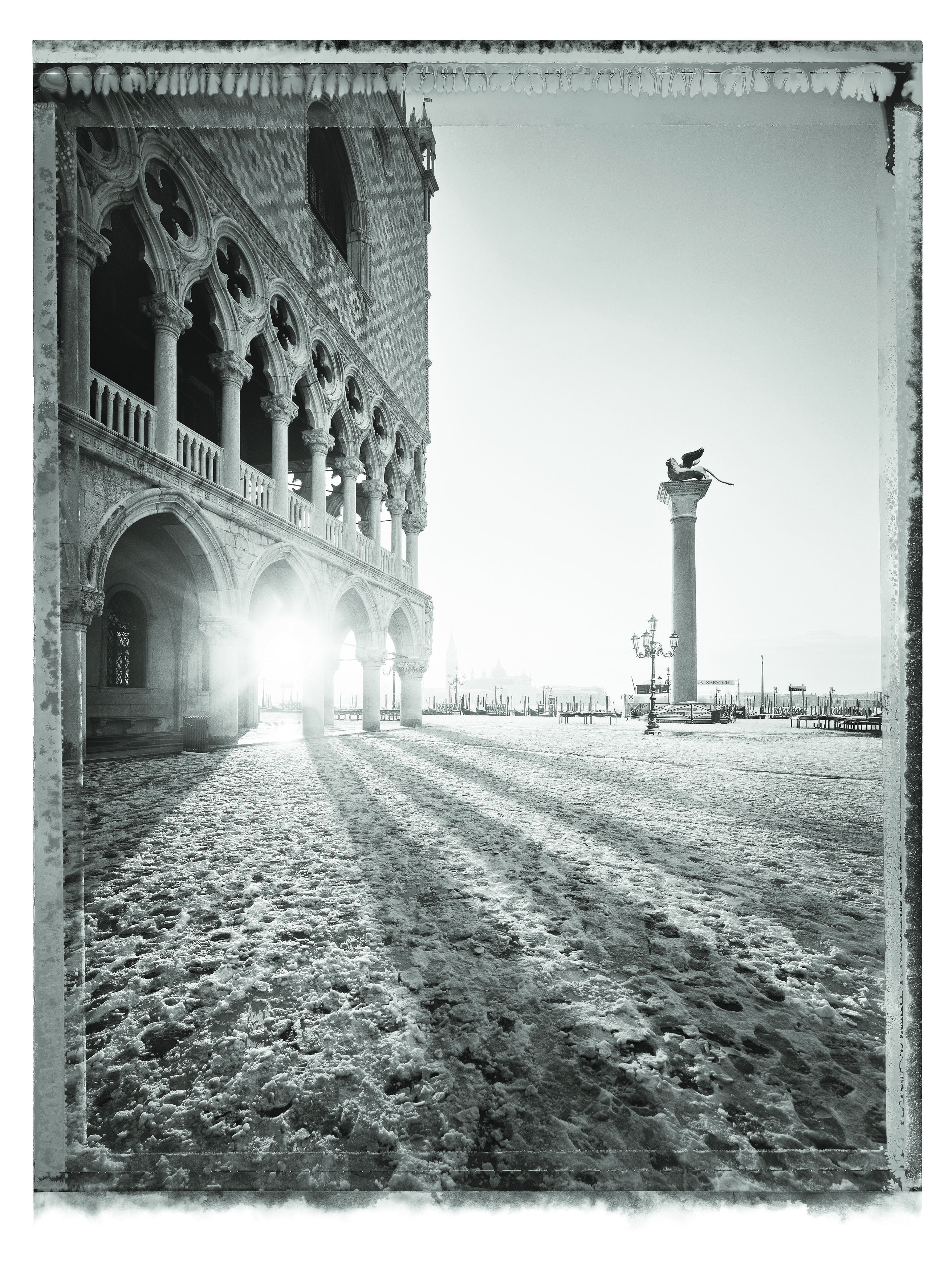Bella domanda. Se parliamo di Venezia, per esempio, io non giro con la macchina fotografica in mano e poi a un certo punto scatto. Io lavoro con il cavalletto. Per quanto riguarda il lavoro fatto a Monaco, ci ho messo circa cinque anni, a New York le foto sono addirittura state scattate tra il 2001 e il 2009, con una pausa durata circa due-tre anni, dove in mezzo ho iniziato a fare quelle di Venezia per le quali ci ho messo un anno. La prima cosa che si deve fare è trovare una location, guardarsi intorno per prendere appunti riguardo la luce, usare un computer. Per le fotografie pubblicitarie per esempio si diceva anche: “No, la luce di adesso non va bene, bisogna aspettare Marzo per scattare”. In una foto che ho scattato a Venezia ho aspettato l’alba perché solo in quell’esatto momento si vedeva il sole spuntare tra i portici. E ho dovuto fare le cose di fretta perché c’era la neve e a Venezia e siccome c’è marmo ovunque, la tolgono immediatamente perché la gente cade in continuazione!