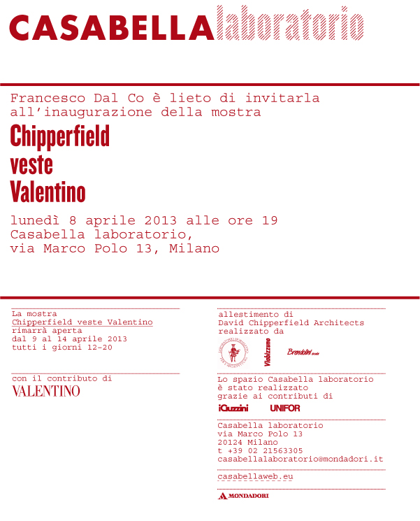 In mostra a Casabella laboratorio i modelli, le fotografie e i disegni dei concetti cardine dei progetti elaborati per Valentino dallo studio David Chipperfield Architects di Milano.