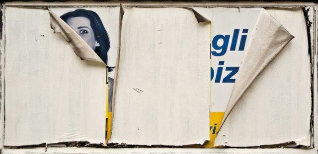 In mostra 40 scatti che ritraggono manifesti lacerati, graffiati e maltrattati, testimoni, quasi involontari, dei grandi temi di oggi: la politica, i giovani, il ruolo delle donne, la necessità di apparire, le ambiguità della comunicazione, i diritti umani, la famiglia, l’infanzia, il lavoro, le speranze.
