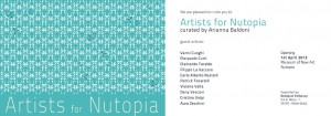 Ho deciso di fare una mostra in un luogo concettuale, che da altri fosse stato fondato e che avesse un riconoscimento anche come comunità, non lo avrei potuto inventare. Avevo bisogno che altri lo avessero già fatto prima di me, e lì potevo andare a intervenire. Ovviamente avevo bisogno anche del ‘consenso’, diciamo di una sorta di approvazione ad agire nell’universo di Nutopia, e questa è arrivata da New York. Nutopia è la predisposizione al bene, fondamento e condizione necessaria dell’arte. Aritists for Nutopia esiste e trova nuova linfa vitale con la partecipazione dei dieci artisti che ho voluto coinvolgere, la loro adesione è la spinta, la progressione, il flusso indispensabile alla realizzazione del progetto”. (A. Baldoni)
