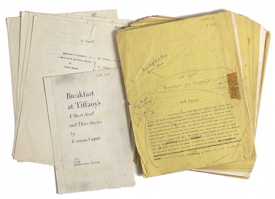 Colazione da Tiffany. La storia d’amore più celebre e romantica della storia del cinema americano, rimane un piacevole evergreen sul quale continuare a sognare. Ha fatto sicuramente sognare il fortunato o la fortunata che qualche anno fa in asta si è aggiudicato la villa nel quartiere Brooklyn Heights, location dove Truman Capote scrisse il romanzo da cui è poi stato tratto il film nel 1961. I sogni non finiscono qui, infatti, sempre in asta, dal 18 al 25 Aprile saranno in vendita presso RR Auctions ad Amherst nel New Hampshire, il manoscritto dal quale poi Blake Edwards ne estrapolò il film. Il prezzo base del lotto si aggira intorno ai 10mila dollari. Prezzo fácilmente lievitabile, secondo gli esperti. Fogli scritti a macchina, chiose e le correzioni di Capote rendono il manoscritto ancora vivo e fresco, donando quel valore aggiunto dal sapore poético e passionale. Una giovane e affascinante “american geisha”, New York, lusso e passione. Gli ingredienti ideali per incantare generazioni di donne romantiche e intraprendenti come la protagonista Holly Golightly. Una curiosità scovata tra le note a margine del manoscritto riguarda proprio la protagonista, nel film impersonata dalla magnifica Audrey Hepburn. Il nome inizialmente doveva essere Connie Gustafson.