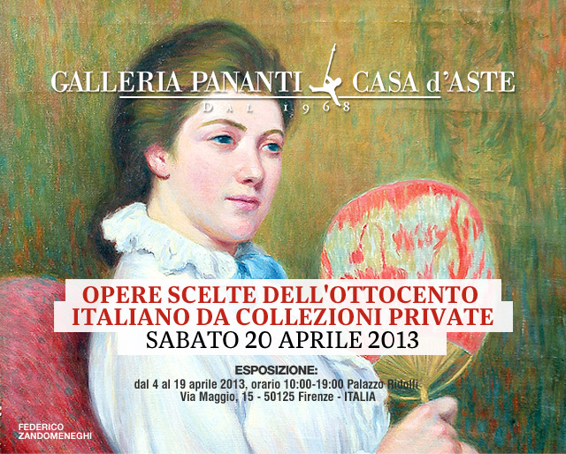 La Casa d’Aste Pananti presenta dal 4 al 19 aprile una mostra-asta nella sua sede di Palazzo Ridolfi. Offre una raccolta di opere dei maggiori autori della pittura dell’Ottocento, un vero e proprio cammino nella pittura italiana di quel periodo. Un catalogo curato dal Professor Andrea Baboni, storico dell’arte e curatore di importanti mostre sui Macchiaioli e sui pittori dell’Ottocento italiano, con schede tecniche e approfondimenti dettagliati oltre che informazioni bibliografiche sulle opere, è stato realizzato per l’occasione.