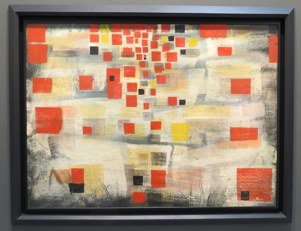 Chiudo questa breve e per nulla esaustiva carrellata di consigli e segnalazioni con una chicca di elevatissima qualità a un prezzo contenuto (per la caratura dell’opera e dell’artista). Da Spazia (Bologna) spicca prepotente un incredibile, raffinatissimo Sanfilippo del 1955, l’anno in cui espose alla VII Quadriennale di Roma (che decennio!), opera che prelude a ogni posteriore evoluzione. Una splendida prova di uno dei più grandi interpreti di Forma 1 che, per motivi a me del tutto ignoti, il mercato ancora non premia come dovrebbe. Questa è, infatti, un’opera che può essere acquistata a 29.000 euro, laddove – in altri luoghi e forse in altri tempi – neppure il doppio dovrebbe essere congruente.