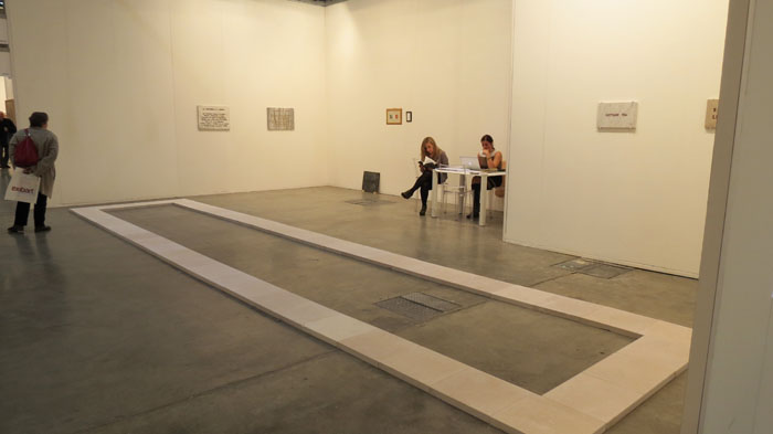 Magnifico lo stand colto di P420 (Bologna) che inanella una serie bellissima di opere degli anni ’70 di Irma Blank e Paolo Icaro, due outsiders che meritano un approfondimento da parte del collezionista più attento. I gessi evocativi di Icaro riprendono in tono più complesso le idee di Boetti e Penone, ma solo in superficie. Ci sono una levità della materia, un intrigo filosofico sottile, che superano in raffinatezza di tocco le posizioni dei colleghi forse più famosi.