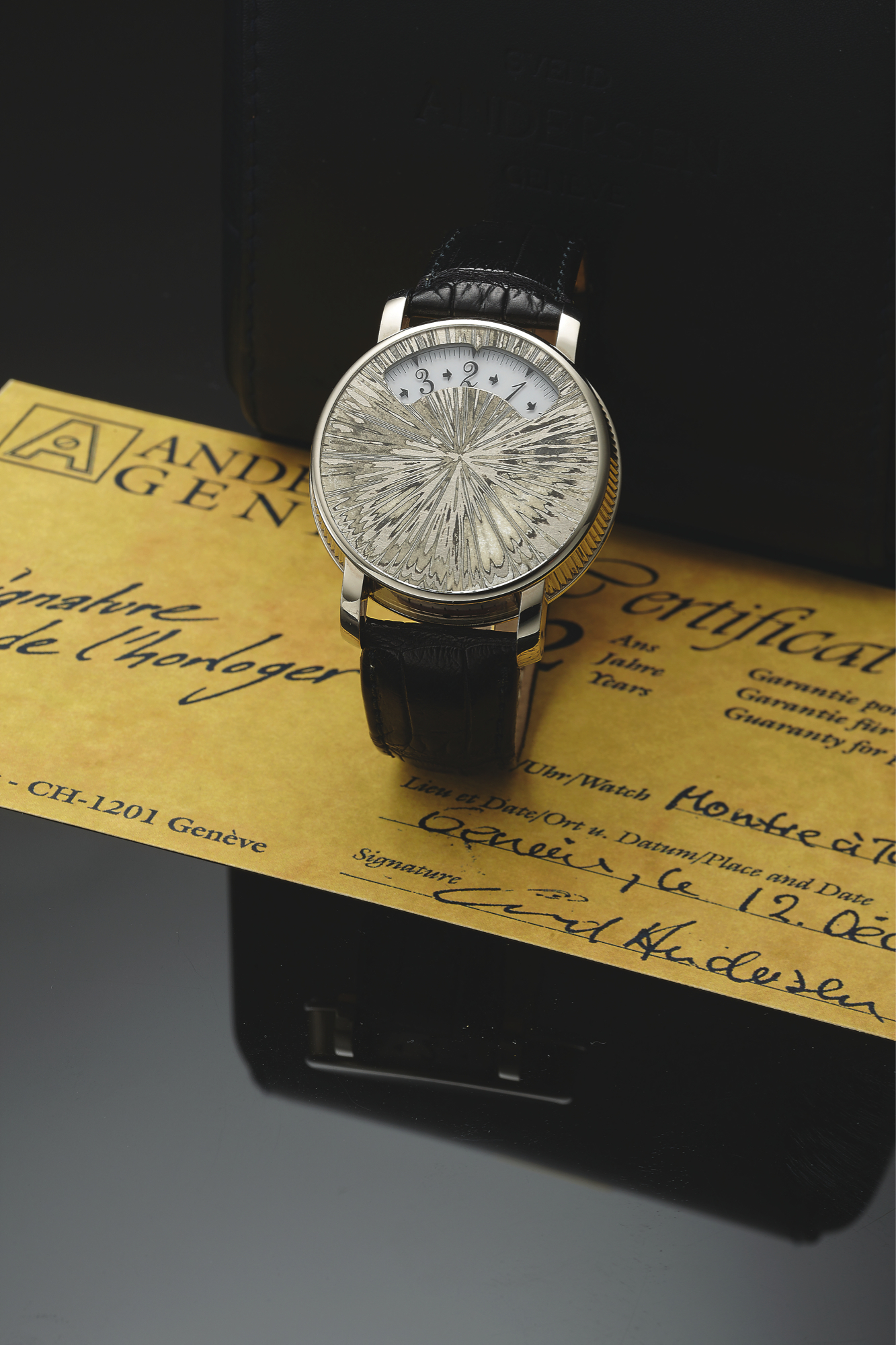 Riconosciuto per il design del quadrante il signor Andersen divenne noto alla comunità degli orologiai quando per aver costruito un orologio in una bottiglia presentato poi alla televisione svizzera, che gli valse il titolo, “l’orologiaio dell’impossibile.” Andò poi a lavorare presso la Patek Philippe sotto l’orologiaio leggendario Max Berney e dopo tre anni fondò il suo laboratorio nel 1979.