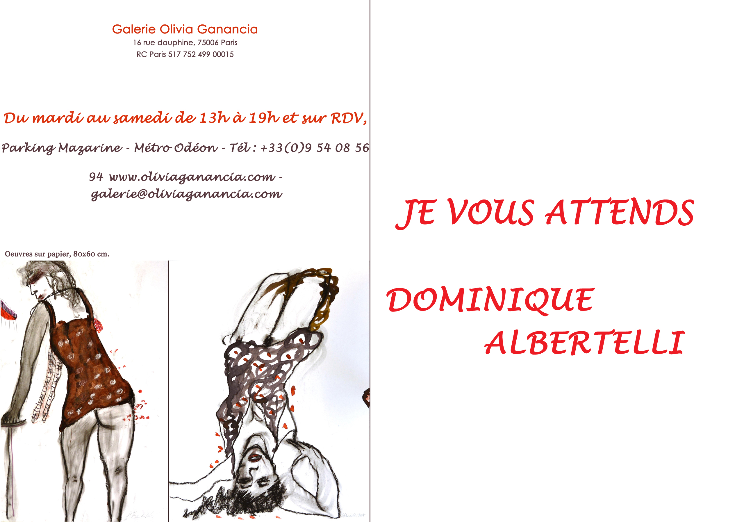 Mostra personale delle opere dell’artista Dominique Albertelli dal titolo “Je vous attends” alla galleria Olivia. L’inaugurazione si terrà Mercoledì 17 Aprile dalle 18:30 alle 22 (o su appuntamento).