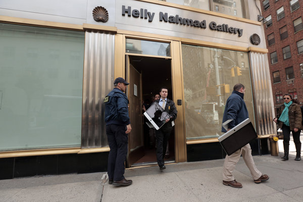 La galleria, che commercia opere di maestri d’arte moderna come Wassily Kandinsky e Francis Bacon, ha un ingresso al Madison Avenue e la 76th Street. Durante la perquisizione tutte le finestre erano coperte da carta marrone. Un cartello sulla porta diceva: “Siamo chiusi per lavori di ristrutturazione, si prega di suonare il campanello.”