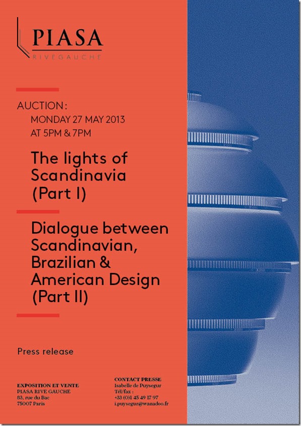 Lunedì 27 maggio, da Piasa Rive Gauche, dalle 17 alle 19,00, in asta per la prima volta arte proveniente da diversi paesi del mondo per esplorare le affinità e le influenze reciproche tra arte scandinava, americana e brasilianadel design tra il 1940 e il 1960.