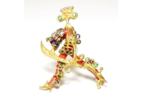 Sessanta i lotti di gioielli che saranno battuti da Elisabetta Mignoni nell’asta di metà maggio e con i gioielli alcune rarità per appassionati collezionisti. Il gioiello è ormai consuetudine nelle aste delle aste Maison Bibelot sempre più attenta alla qualità creativa senza tempo oltre che al pregio delle pietre. Fra i lotti più significativi una spilla in oro giallo, corallo, diamanti, smeraldi e quarzi, realizzata come un Saraceno (valutazione 15,000 €) creazione dello scultore siciliano Afro Basaldella per il gioielliere Mario Masenza.