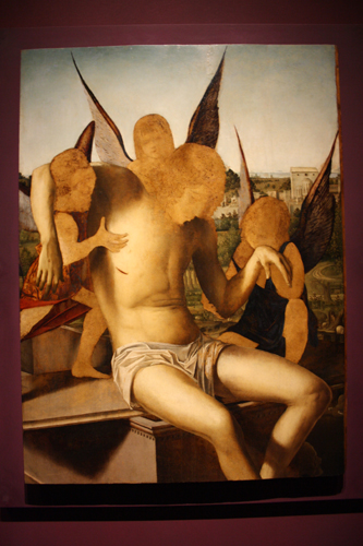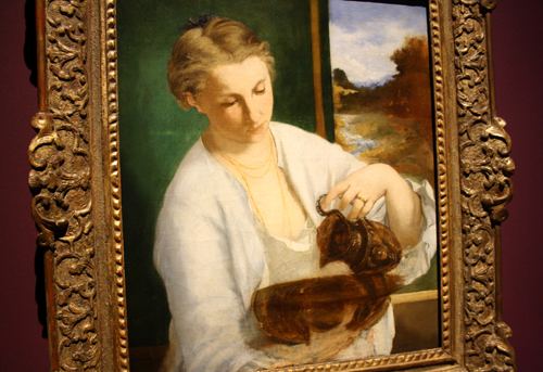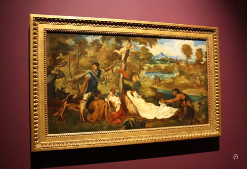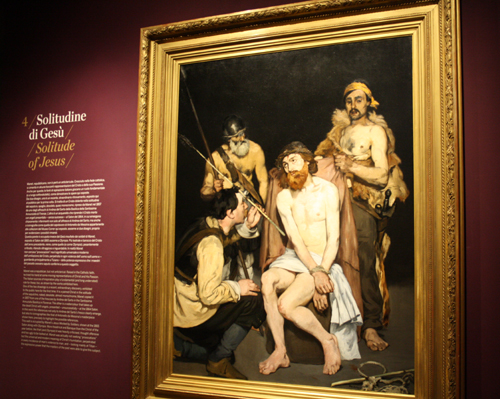 Manet è contaminato dalla pittura italiana prima ancora della tanto decantata, seppur a ragione, arte spagnola, vista da giovane soltanto attraverso le opere del Louvre. Il primo viaggio in Spagna è postumo all’Olympia nel 1864. Manet aveva già eseguito la Déjeunere sur l’herbe – 1863 (in mostra, in prestito dalla Courtauld Gallery di Londra) dal modello del Concerto Campestre di Tiziano, nonché dipinto il ritratto dei genitori (1860) ispirato al Tintoretto e la Donna con la brocca (1858) che rimanda al Veronese. E via così in mostra ad una serie di confronti con il Carpaccio, Andrea del Sarto, Lorenzo Lotto, Benozzo Gozzoli, Antonello da Messina per evidenziare l’anima italiana del maestro francese, spesso minimizzata dalla critica, attraverso il dialogo tra opere d’arte. I Maestri italiani reinterpretati attraverso il linguaggio moderno. Un confronto dal vero. Questo si prefigge la mostra.