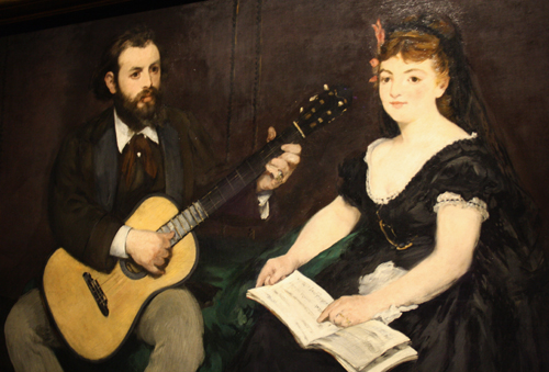 Intanto verrà folgorato da Goya e Velazquez. L’ispanismo è di gran moda nella Parigi dell’epoca e il pittore riscuote un discreto successo con il Chitarrista, Lola di Valenza e il Piffero, questi ultimi due in mostra. Più tardi Impressionisti e non solo lo inseguiranno tanto da diventare il punto di riferimento della nuova generazione di artisti. “Manet era per noi tanto importante quanto Cimabue o Giotto per gli italiani del Rinascimento” scrisse Renoir. Il tempo è finalmente cambiato: la critica, che lo ha sempre distrutto, comincia ad apprezzare le sue tele. Il Salon, che lo ha spesso rifiutato, gli dà maggiore spazio.