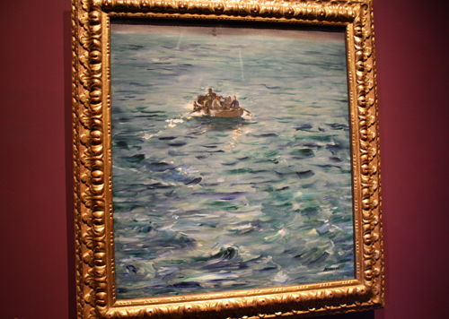 Ritorna a Venezia per l’ultima volta (1874), il mare e le luci della laguna lo ispirano. Le tinte si fanno più chiare. All’impegno civile repubblicano s’intrecciano visioni marine aperte e infinite, la Fuga di Rochefort (1880) in mostra ne è esempio stupendo. Scriveva il suo grande amico Zola davanti all’ennesimo rifiuto del Salon a uno dei suoi quadri: “C’è un gran numero di artisti che oggi vengono considerati grandi, e pagati fior di quattrini; ma io non darei un quadro di Manet per tutti i loro quadri. Verrà il giorno in cui non rimarrà di essi una sola opera, mentre rimarranno quelle di Manet.” E aveva ragione.