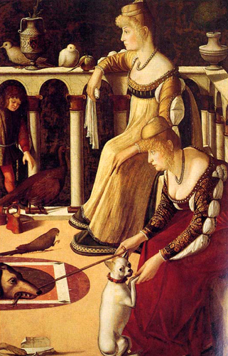 * Vittore Carpaccio. Due dame Veneziane, 1495 c. olio e tempera su tavola/tempera and oil on canvas 94×63 cm. Venezia/Venice, Museo Correr