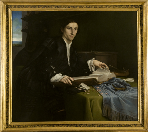 * Lorenzo Lotto, Ritratto di giovane gentiluomo nello studio, 1530 circa, olio su tela/oil on canvas 98×111 cm. Venezia/Venice, Gallerie dell’Accademia