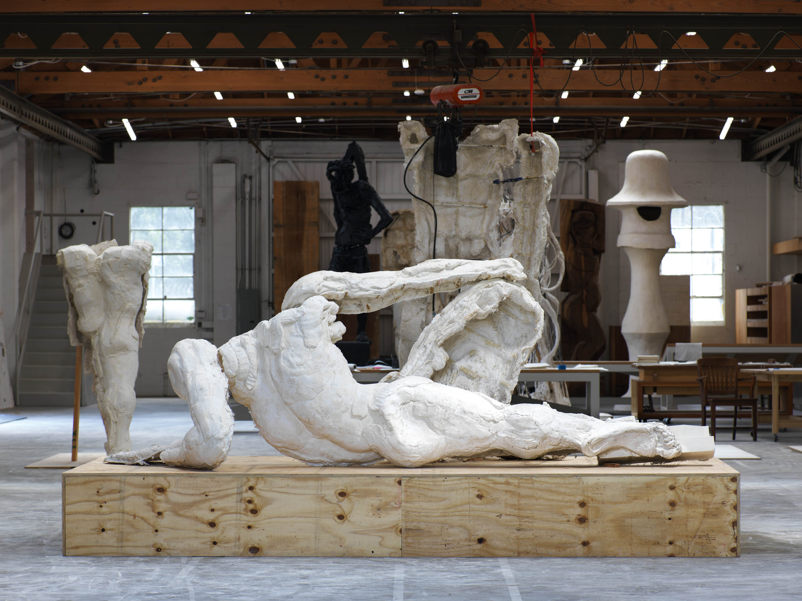 Le parti del corpo sono connesse insieme, spesso in modo inverosimile, ma allo stesso tempo gli arti resi realisticamente richiamano il disegno di una figura. Con i loro scheletri di ferro e cemento armato a vista, i bordi grezzi tagliati come pezzi di un puzzle, l’intonaco e la canapa usata in grandi quantità, i personaggi di Houseago respirano una nuova vita all’interno di forme classiche.