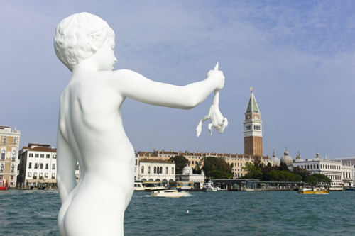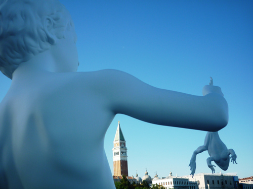 Dal 9 giugno 2009 se ne sta fiera e orgogliosa nell’estremità di Punta della Dogana. È la scultura di Charles Ray, “Boy with Frog”, commissionata da Pinault per celebrare la riapertura della struttura, dopo il restauro di Tadao Ando. Entro fine maggio, invece, l’opera sarà disinstallata per fare spazio all’antico lampione ottocentesco e restituire ai veneziani uno dei punti più romantici della città.