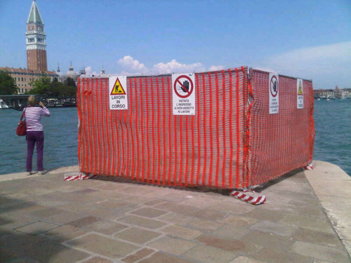 L’opera, un progetto site-specific in acciaio bianco e alta circa due metri e mezzo, è rimasta per quattro anni in uno dei luoghi più suggestivi di Venezia, grazie a una serie di deroghe e a una delibera comunale sui siti espositivi all’aperto; inizialmente, infatti, la rimozione era prevista per il novembre 2009.