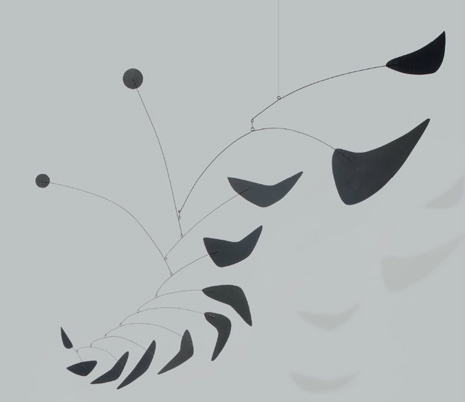 L’ispirazione dell’artista deriva da molteplici situazioni e ambienti, ma forse ciò che ha portato Calder alla sperimentazione di questo tipo di opere è stata la natura. Tuttavia l’artista ha sempre affermato che i suoi lavori sono di carattere astratto, una serie di forme bidimensionali in movimento. Per alcuni può essere poesia. Sicuramente sono lavori che scatenano la fantasia e l’immaginazione, al contrario di una scultura figurativa – sosteneva Calder. La maggior parte delle sue opere presentano colori primari, mentre qui l’artista predilige concentrarsi sulla purezza della forma attraverso un unico colore: il nero. Questa scelta dà ancora più valore alla silhouette che, in relazione agli altri aspetti dell’opera, come i corpi stretti e i supporti sottili, non fa che aumentare sua la grazia e bellezza.