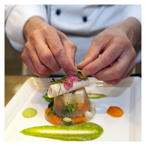 Particolarmente originale, quest’anno, la scelta del ristorante Acanto dell’Hotel Principe di Savoia dove sarà esposta l’opera “Album –ricordi in conserva”, installazione composta da 9 pezzi, singolarmente acquistabili, appositamente creata dagli artisti Monica Scardecchia e Gianfranco Maggio che rivisitano in chiave moderna e originale immagini di repertorio dell’ hotel. Un album, carico di atmosfere d’antan, riproposto dall’executive chef Fabrizio Cadei in un “Aspic di pollo jaune, giardiniera di verdure e salsa verde”, rielaborazione di una ricetta della tradizione proposta negli anni ‘30 agli ospiti illustri del noto albergo milanese.