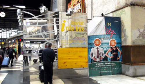 Sabato pomeriggio ore 15. Alla stazione di Cadorna arriva il treno da Varese. Contemporaneamente in Centrale arriva l’Eurostar da Ginevra e a Porta Garibaldi il Passante da Lodi. Persone che vogliono farsi un giro per Milano. “Dove andiamo? Che facciamo?” Chi lo sa. Arrangiatevi. Milano non ha un punto d’informazione turistica nelle stazioni ferroviarie. O meglio, ci sarebbe un gabbiotto della Provincia davanti al binario 13 di Stazione Centrale ma ha appena ricevuto lo sfratto da Trenitalia. Ha i giorni contati. Provvisorio e pure malconcio. Il massimo che si rimedia è una cartina di Milano senza indicazioni di un museo, un palazzo storico e un bene culturale che sia uno. L’unica segnalazione riguarda i negozi For.Me di Elena Mirò o i punti “Tax Free Shopping” di Global Blue. Peggio ancora sui muri esterni a specchio dell’edicola informativa una bella scritta informa il malandato turista che tutto quello che gli serve può trovarlo all’Infopoint del Duomo. Peccato che il vecchio Spazio Eventi Milano Tourist all’ex Cobianchi sia chiuso ormai da anni.