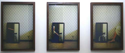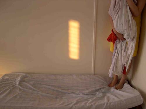 A chi non è accaduto di provare a superare, per quanto è possibile, la barriera del tempo? Certi luoghi molto distanti, ma nuovi per noi ci disorientano, al punto di coinvolgere ogni capacità immaginativa. Andiamo oltre la lontananza e il punto di partenza in un luogo disabitato dal tempo, inoltrandoci in una solitudine ancora più intatta e completa. “Parigi” “San Paolo” “Italia” sono i titoli degli autoscatti che evocano in chi guarda la rappresentazione di un luogo preciso ma allo stesso tempo una scissione tra il mondo e le proprie immagini, tra quelle immagini che hanno il potere misterioso di illuderci di rappresentarlo. Le immagini si somigliano, hanno lo stesso taglio e composizione, le stanze sono anonime e il volto dell’artista non si vede mai: tra noi e queste immagini c’è una voluta distanza.