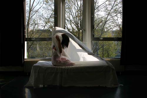 Un senso di fragilità e insieme di forza emana dalle opere presentate da Donatella Spaziani nella mostra “15 maggio” curata da Maria Savarese alla Galleria Dafna di Napoli. Un corpus di circa dodici lavori, realizzati tra il 2005 e il 2011 che documenta le diverse tecniche che l’artista adopera in funzione della miglior resa dell’idea, della sua urgenza espressiva: alcuni autoscatti a colori, una serie di disegni a china ed acrilici su carta da parati, un gruppo di piccoli disegni a matita ed acquerello su carta raffiguranti le sagome di due amanti ed un intervento site-specific, ovvero un disegno che viene definito dalla forma creata dalla luce riflessa sulla parete centrale della galleria.