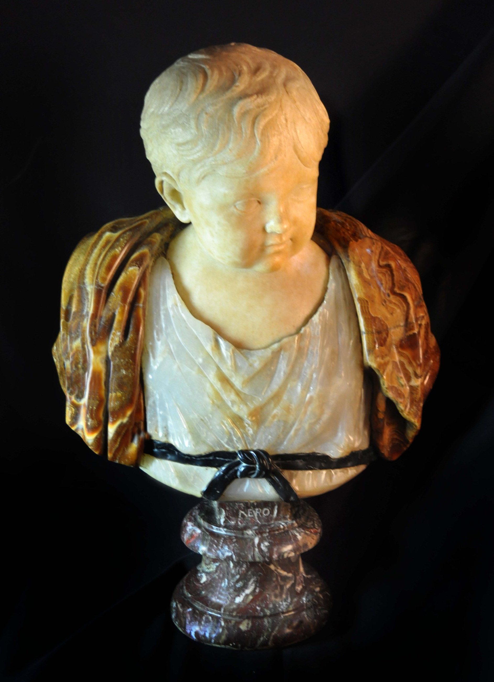 Il busto, raffigurante un ignoto bambino di epoca giulio-claudia dell’età di circa tre/quattro anni, convenzionalmente ritenuto il piccolo imperatore Nerone, è una scultura di eccellente fattura risalente alla prima metà del I sec. dopo Cristo, presente in Galleria dal 1704 è un’opera lapidea che appartiene al nucleo più antico di antichità in possesso della famiglia Medici. A quest’opera fu riservato un posto di eccezione nella Tribuna, lo spazio elitario della Galleria ricettacolo delle opere più preziose delle raccolte granducali; e non a caso nel 1776 Johan Joseph Zoffany lì lo ritrae ancora nella sua celebre veduta della Tribuna.